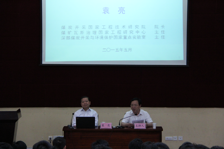 5月17日下午,校本部六角楼报告厅座无虚席,我校杰出校友、特聘教授、中国工程院院士袁亮在此面向全校逾260名师生代表作了题为《我国煤矿瓦斯防治研究方向》的学术报告。副校长刘泽功主持报告会。