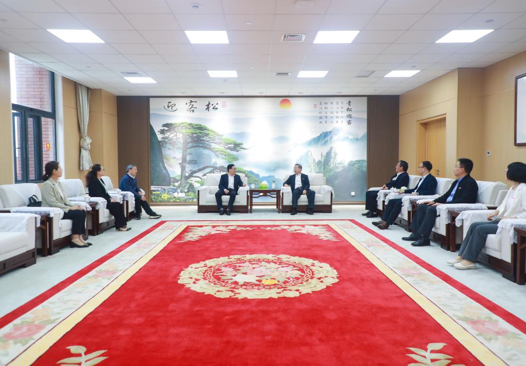 5月10日,中国科学院院士、宁波大学党委副书记、校长蔡荣根一行来校交流,校党委副书记、校长袁亮院士在党委办公楼315会客室亲切会见来宾。国家自然科学基金委数理学部原常务副主任汲培文参加会见。